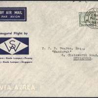 Inaugural Internal Air Services 1937 Wearne's Air Services - FFC from Kuala Lumpur, FMS to Singapore :: Specially Addressed to Theodore Wearne, the Company's Founder