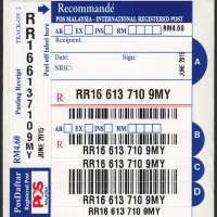 Malaysia PosDaftar Track-On 2 (Blue : Recommandé - International Registered Post) June 2015