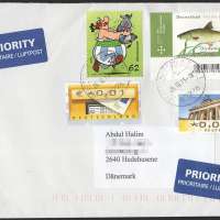 Denmark - Postal Cover from Germany with Stamps & ATMs (2015)