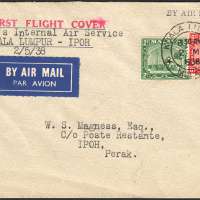 Malaya Internal Air Services 1937 Wearne's Air Services - FFC from Kuala Lumpur to Ipoh (1938)