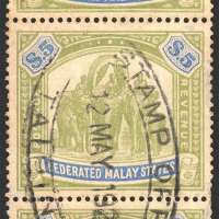 Federated Malay States - $5 Strip of 3 : Used for Revenue (1924)