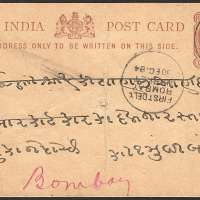 British India - Postcard from Dhoraji to Bombay Market : First Delivery (1884)