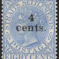 Straits Settlements - 4¢ Surcharged on 8¢ - Bright Blue (1899)