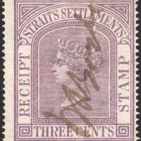 Straits Settlements - Queen Victoria : Receipt Stamp 3¢