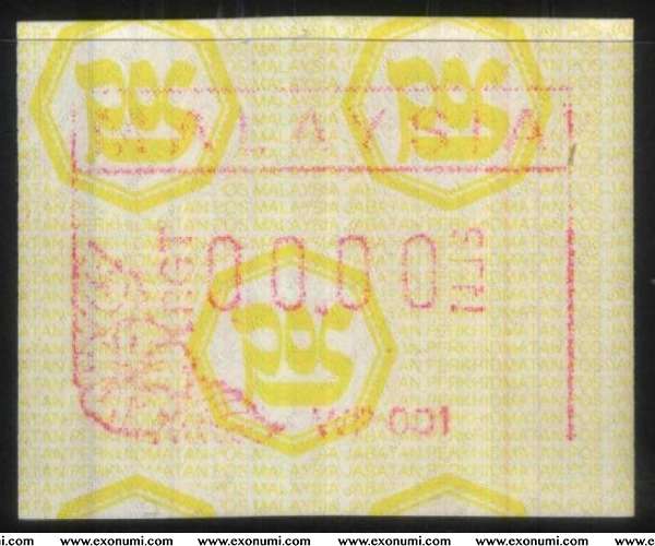In 1987 the Malaysia postal administration (Jabatan Perkhidmatan Pos Malaysia) tested an ATM vending machine, model FE 254, from the Swiss company FRAMA. The distributor was installed on May 25th 1987 in the Dayabumi complex, and from January 1990 in the capital's main post office, Kuala Lumpur.