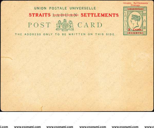 Overprinted 'STRAITS SETTLEMENTS' on Labuan Postcard