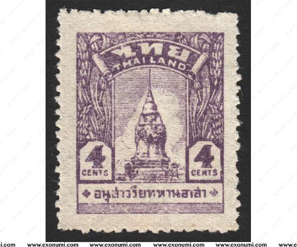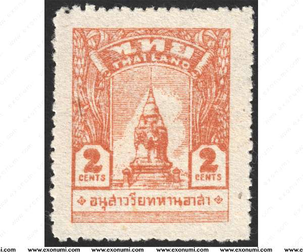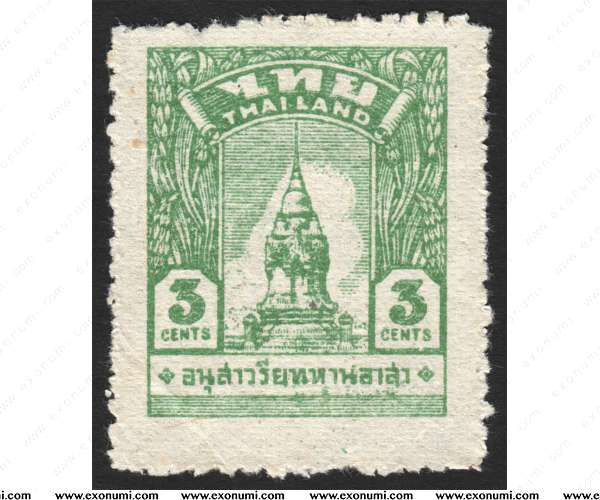 The design is similar for all stamps, depicting War Memorial in Bangkok.