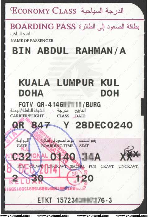 القطرية Qatar Airways : Boarding Pass (2014) KUL-DOH