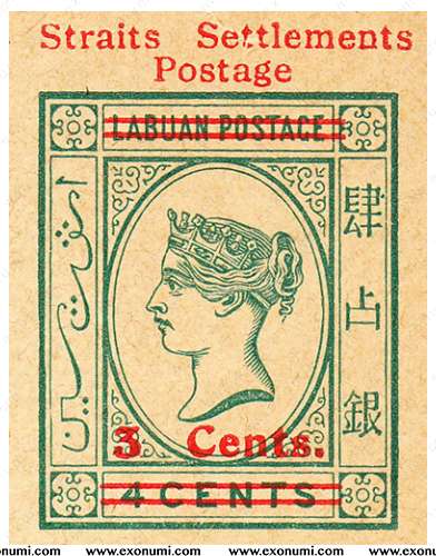 Straits Settlements - Postcard : Overprinted & Surcharged on Labuan (1907)