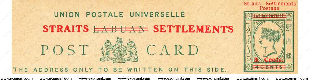 Straits Settlements - Postcard : Overprinted & Surcharged on Labuan (1907)