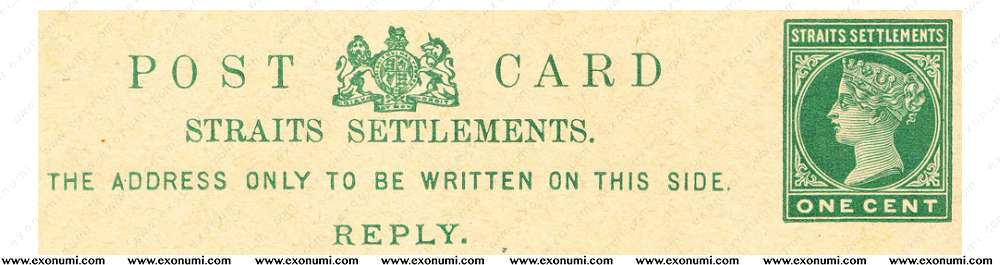 Straits Settlements - Postcard 1¢ + 1¢ Reply Card (1884)