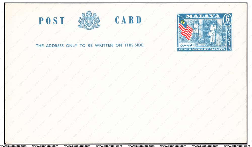 Federation of Malaya - Postcard Type I : 'POST CARD' 6¢ (1957)