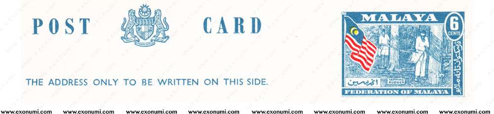 Federation of Malaya - Postcard Type I : 'POST CARD' 6¢ (1957)