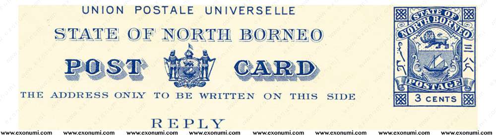State of North Borneo - 3¢ Postcard with 3¢ Reply Card (1894)