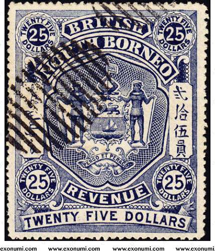 British North Borneo : Revenue Stamp $25 (1889) CTO