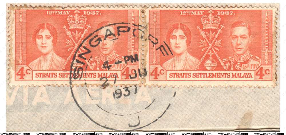 Inaugural Internal Air Services 1937 Wearne's Air Services - FFC from Singapore to Kuala Lumpur, FMS - Coronation 1937 4¢