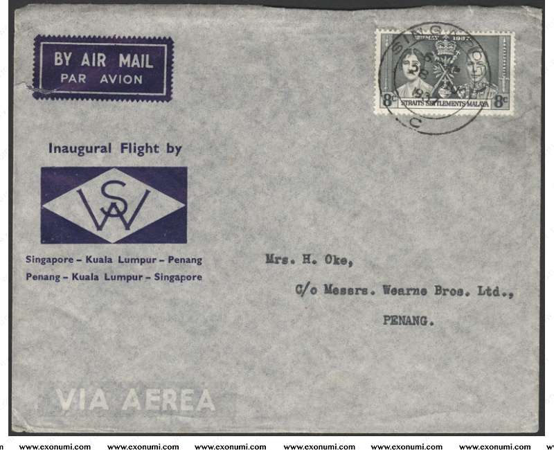 Malaya - Inaugural Air Services 1937 (FDC) Wearne's Air Services