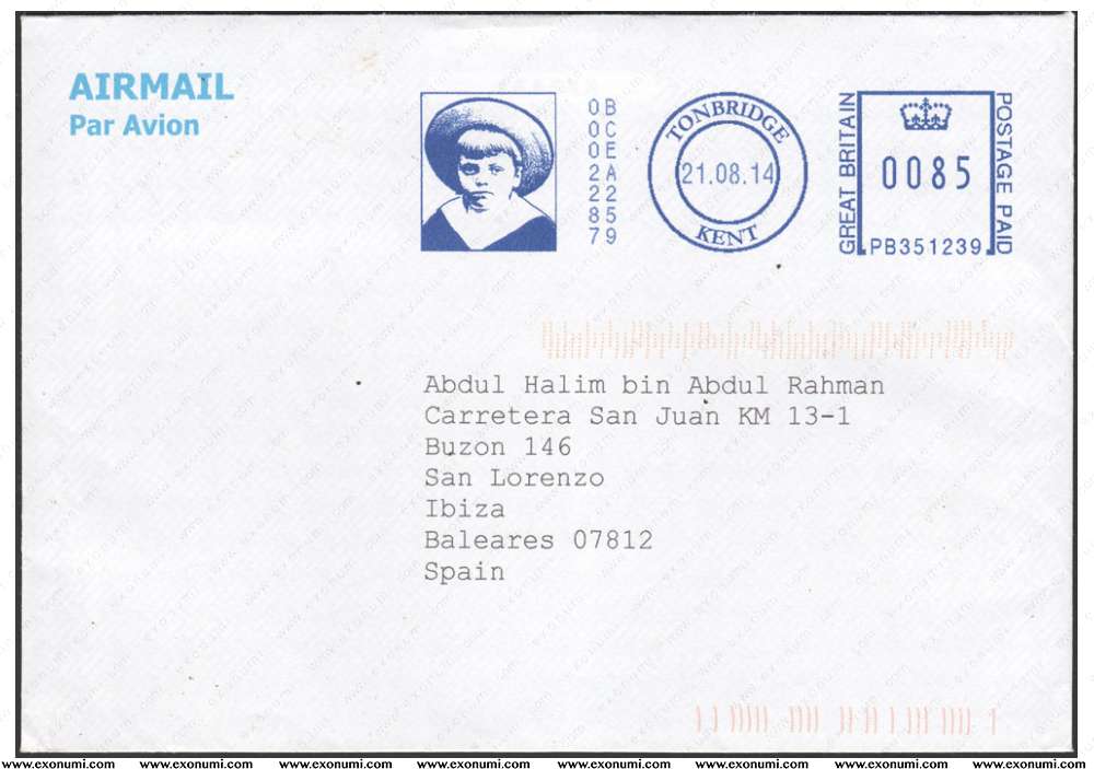 Spain - Postal Cover from Great Britain (2014)