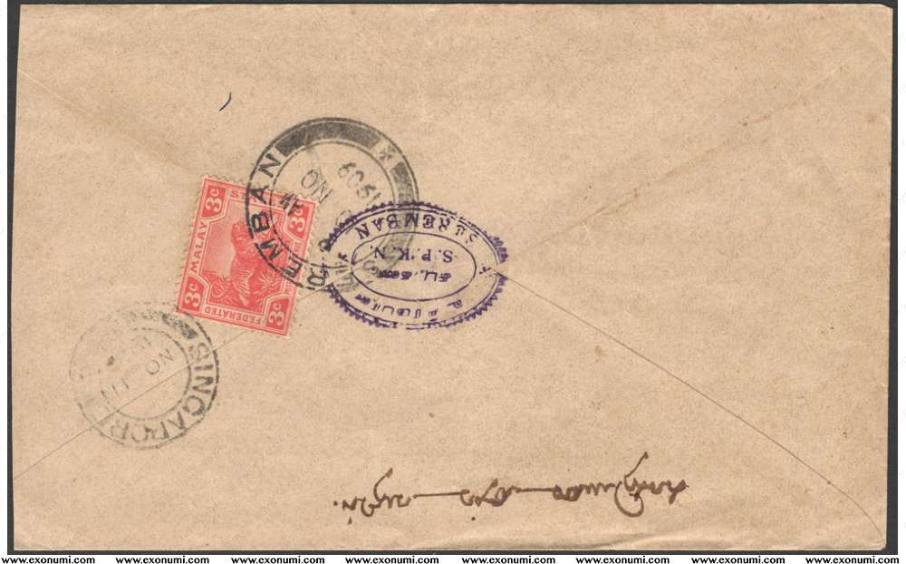 Federated Malay States - 3¢ from Seremban to Singapore (1909)