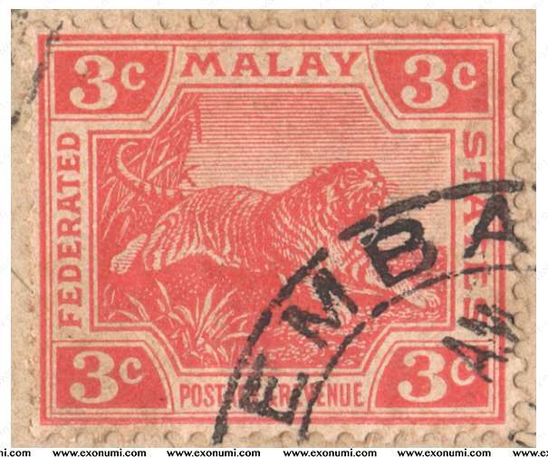 Federated Malay States - 3¢ from Seremban to Singapore (1909)
