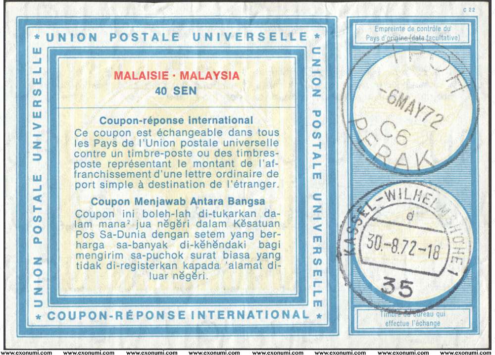 Malaysia - Coupon Menjawab Antara Bangsa (Coupon-réponse International) #Vi-19 1972 USED