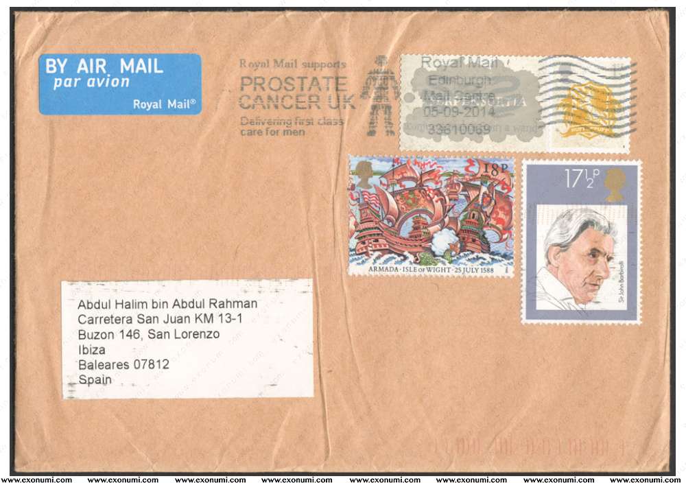 Spain - Postal Cover from Edinburgh (2014)
