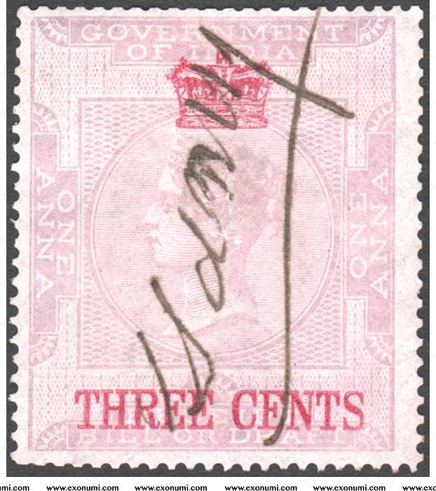 Straits Settlements - Revenue 3¢ Overprinted on 1 Anna India