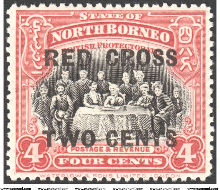 North Borneo - Surcharged RED CROSS 2¢ on 4¢ (August 1918)