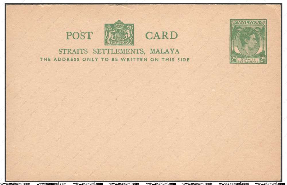 Straits Settlements - King George VI 2¢ Postcard (1938)
