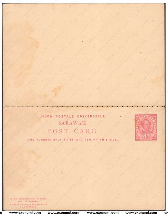 Sarawak - Sir Charles Brooke 4¢ + 4¢ Reply Card (1900)