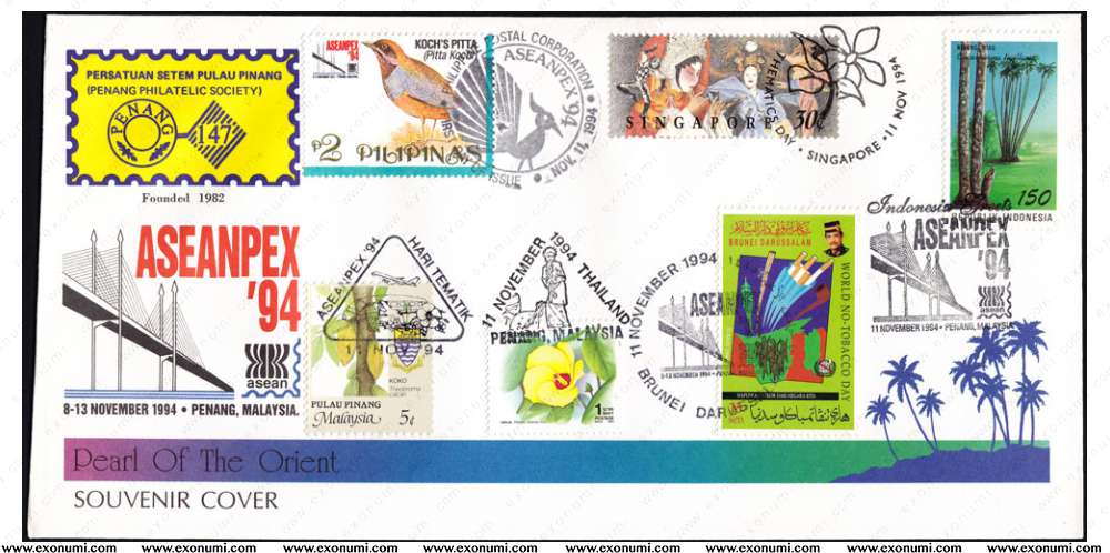 Malaysia - ASEANPEX '94 Stamp Exhibition, Penang Malaysia (1994) 6 Souvenir Covers