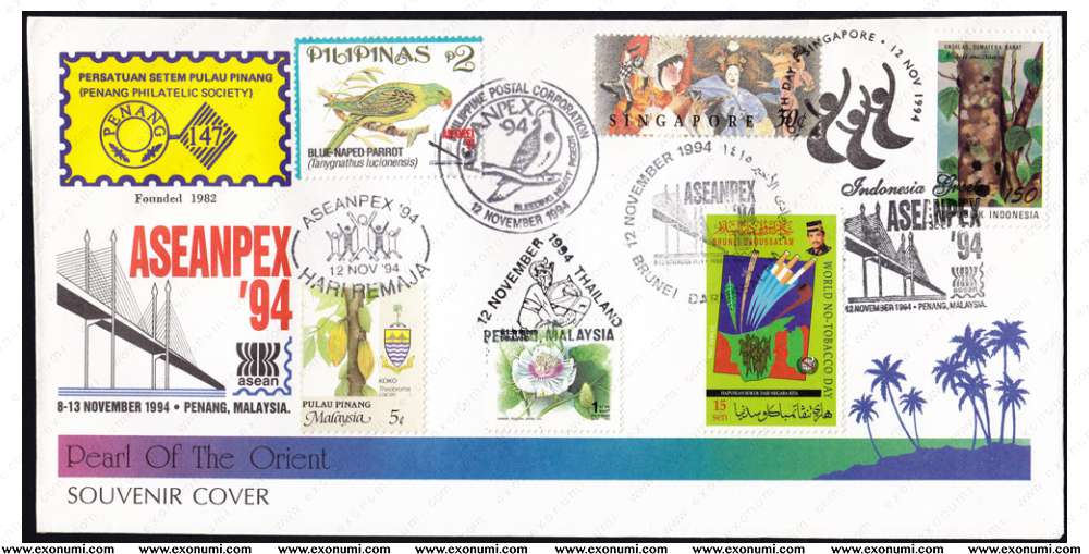 Malaysia - ASEANPEX '94 Stamp Exhibition, Penang Malaysia (1994) 6 Souvenir Covers