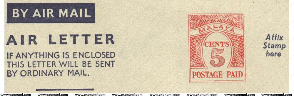 Federation of Malaya - 5¢ Imprinted Postage Paid Aerogramme (1955)