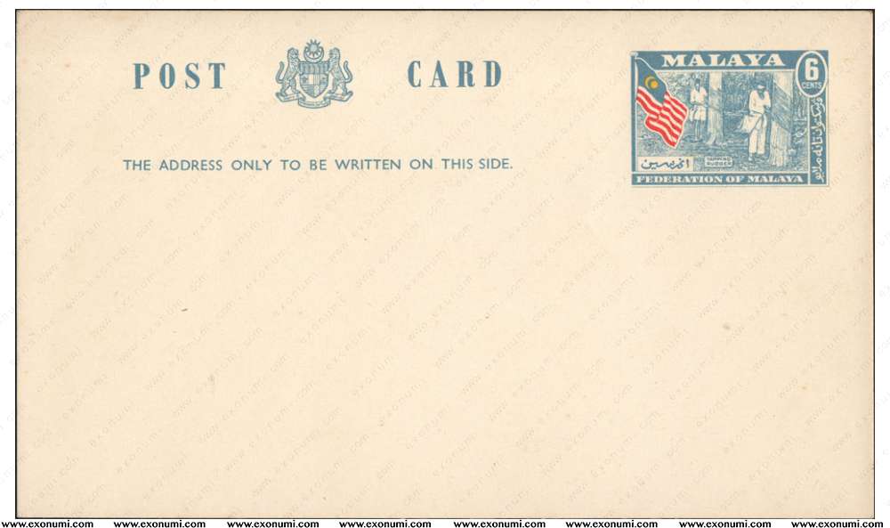 Federation of Malaya - Postcard Type I : 'POST CARD' 6¢ (1957)