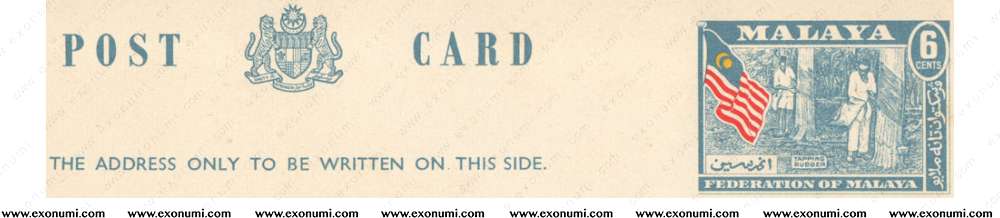 Federation of Malaya - Postcard Type I : 'POST CARD' 6¢ (1957)