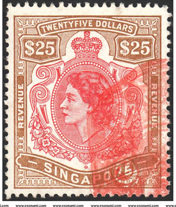 Singapore : Queen Elizabeth II - Revenue Stamp $25