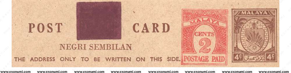 Federation of Negeri Sembilan : 4¢ + Uprated by 2¢ Postcard (1953)