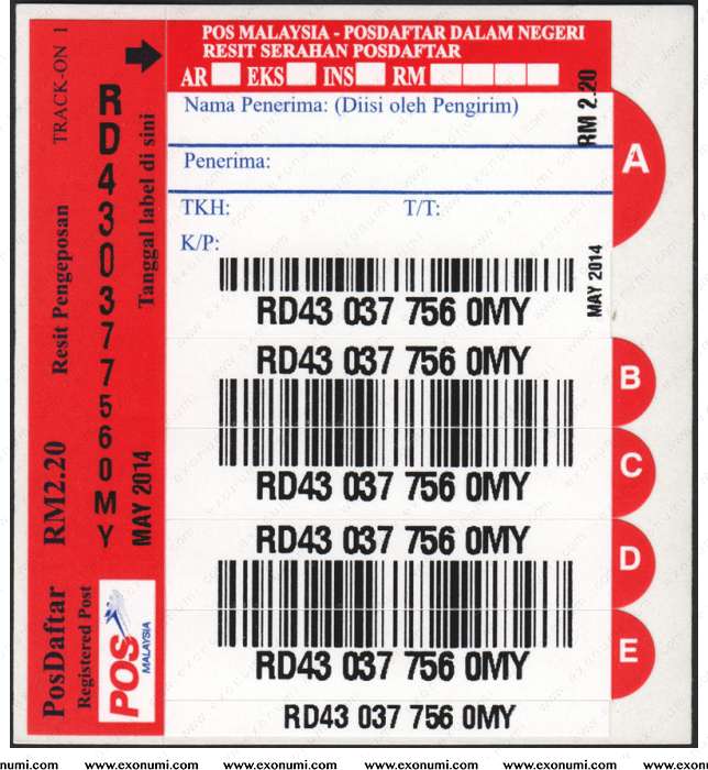 Malaysia PosDaftar Track-On 1 (Red) May 2014