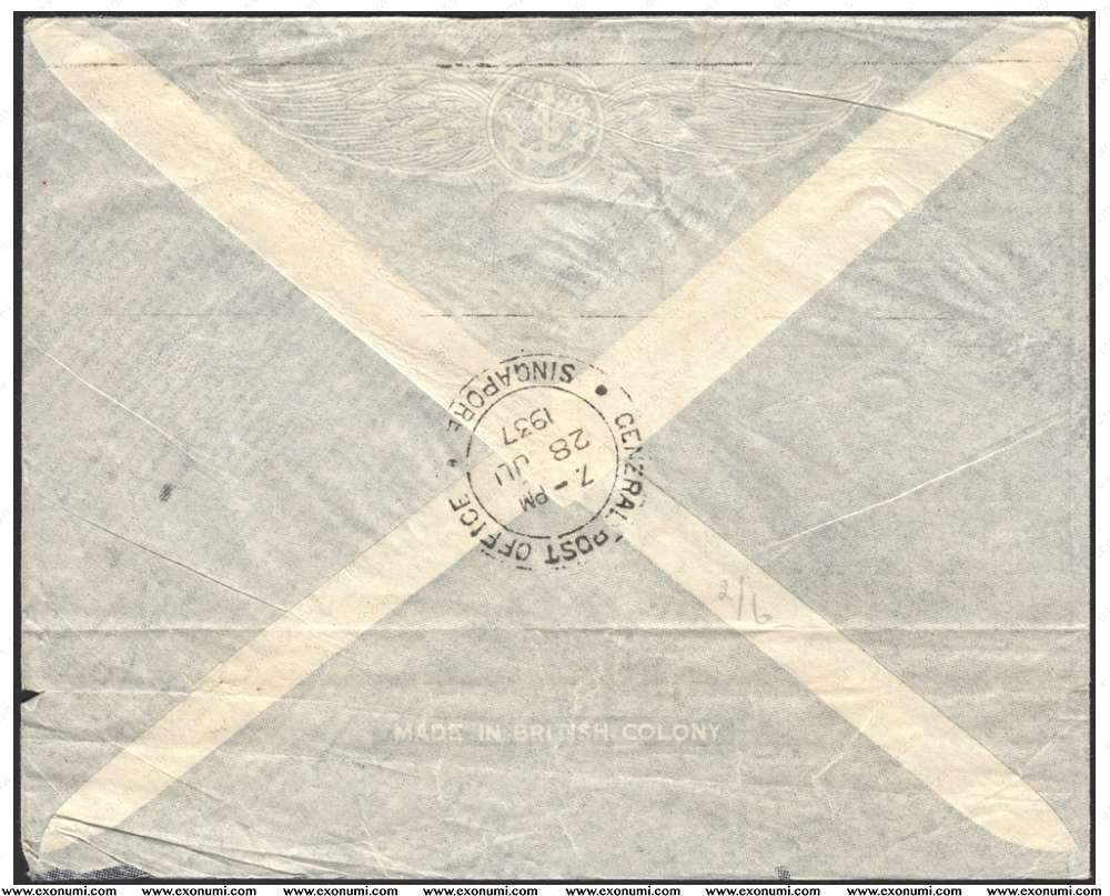 Malaya - Inaugural Air Services 1937 (First Flight Cover) Wearne's Air Services Returning from Penang to Singapore