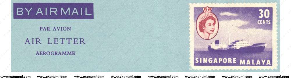 Singapore : Aerogramme with Portrait of Queen Elizabeth II and Oil Tanker with Two Lines of Instruction on Reverse