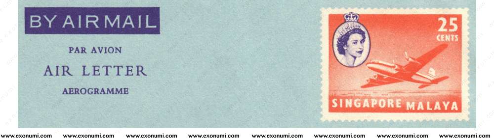 Singapore : Aerogramme with Portrait of Queen Elizabeth II and Airplane 'Argonaut' with Two Lines of Instruction on Reverse