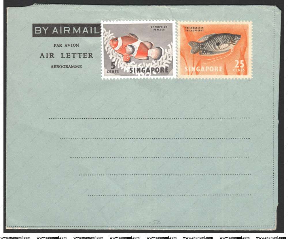 Singapore : Aerogramme Fish 25¢, Uprated with 5¢ Stamp (1962)