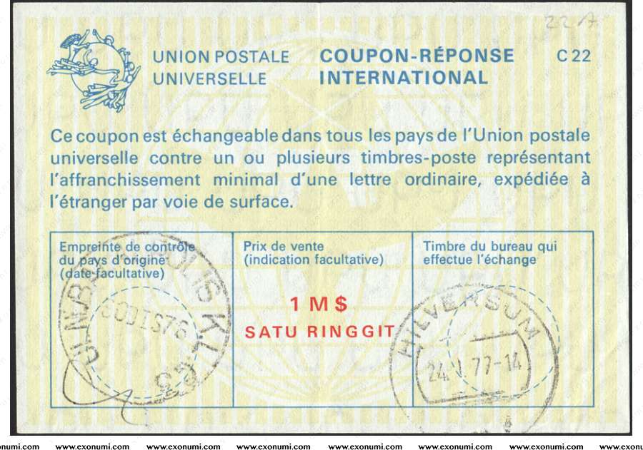 Malaysia - International Reply Coupon : Lausanne Design #22.A M$1.00