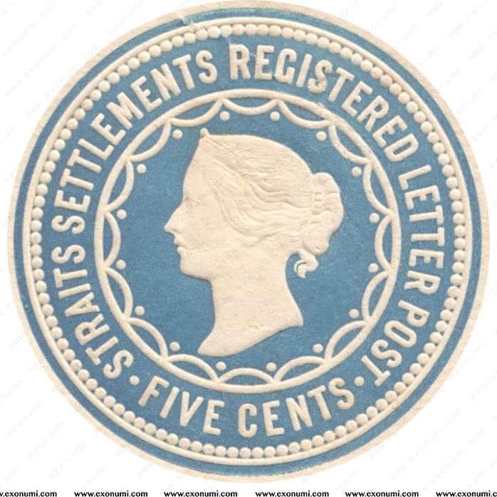 Straits Settlements - Queen Victoria : Prepaid Registered Mail 5¢ Size G (1891)