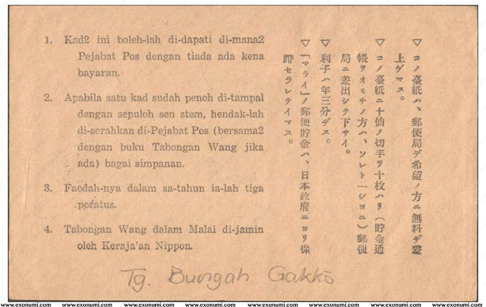 Japanese Occupation of Malaya : Postal Savings Card (1944)