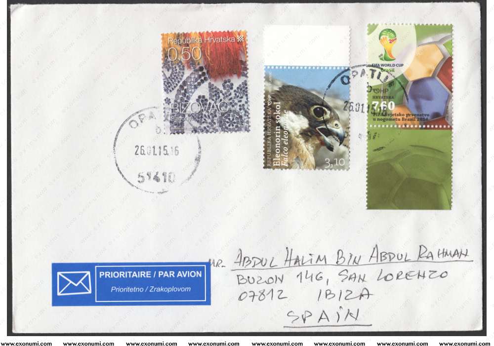 Spain : Postal Cover from Croatia (2015)