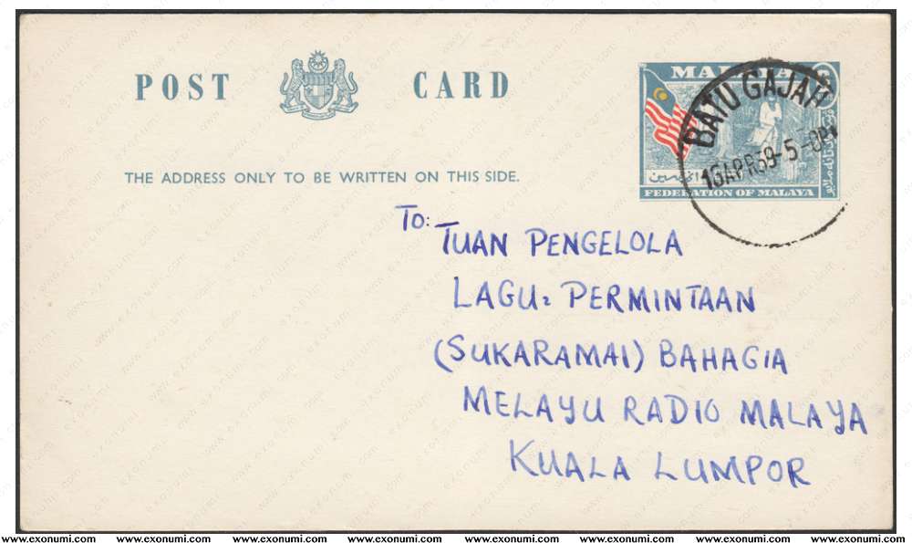 Federation of Malaya : First Issue - POST CARD (Used in 1959)