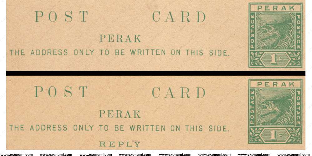 Sultanate of Perak : Postcard 1¢ + Reply 1¢ (1894)
