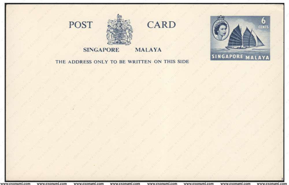 State of Singapore - Postcard of Queen Elizabeth II with Chinese Junk (1955) White Paper