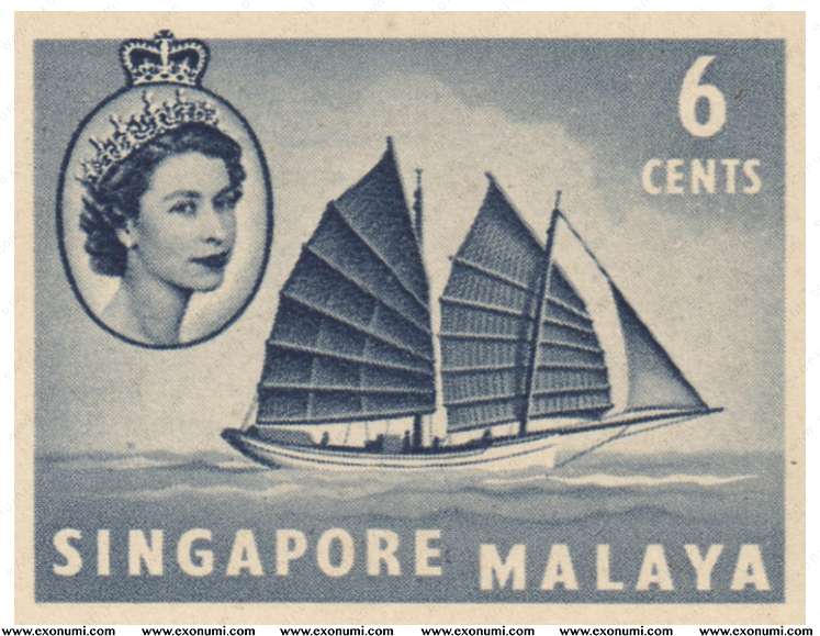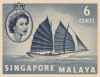 State of Singapore - Postcard of Queen Elizabeth II with Chinese Junk (1955) Cream Paper